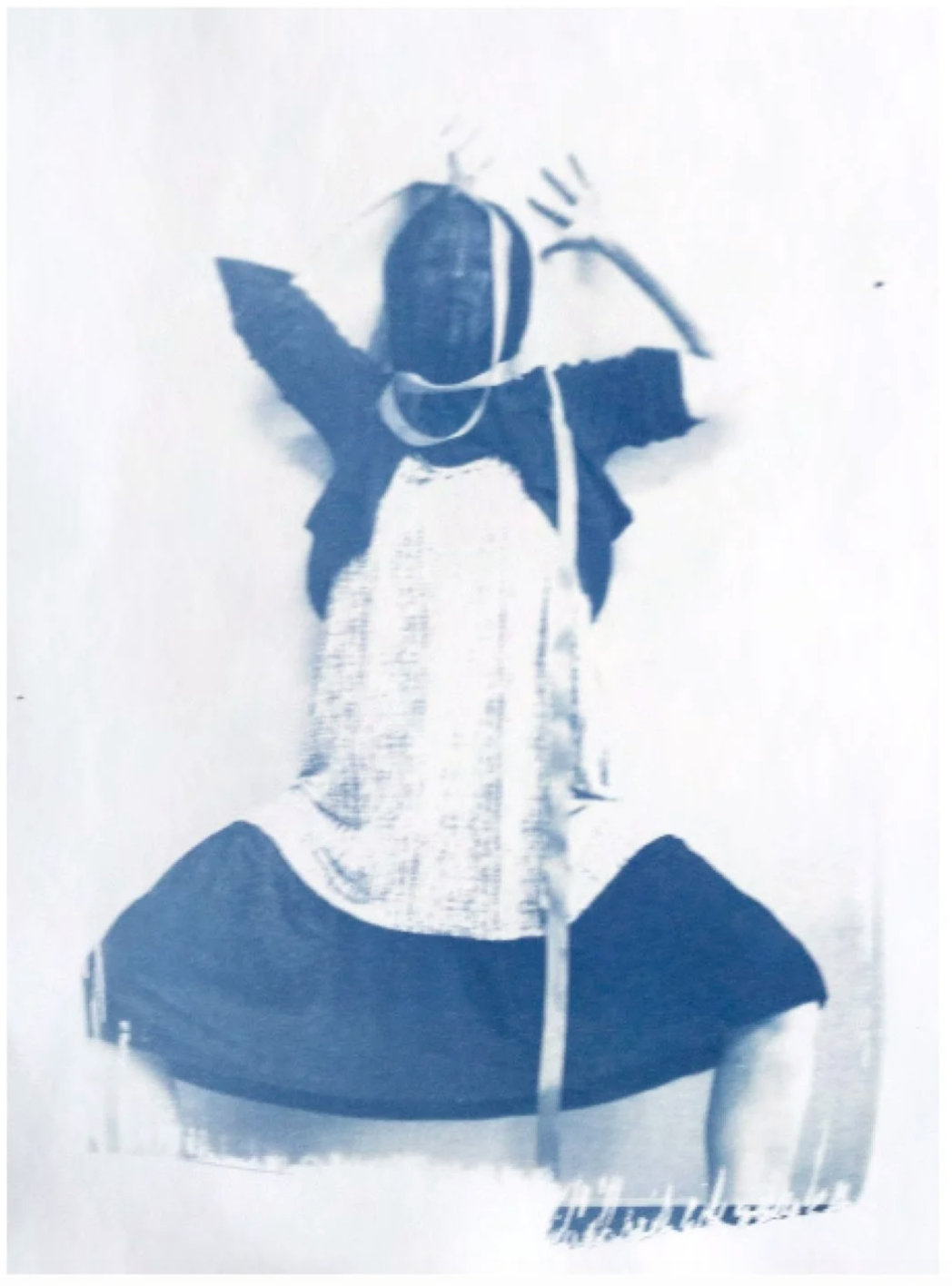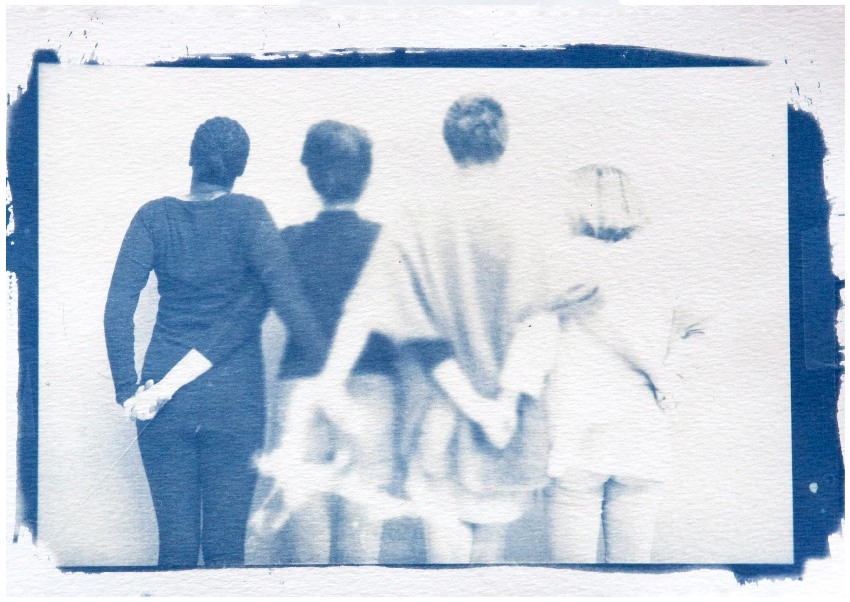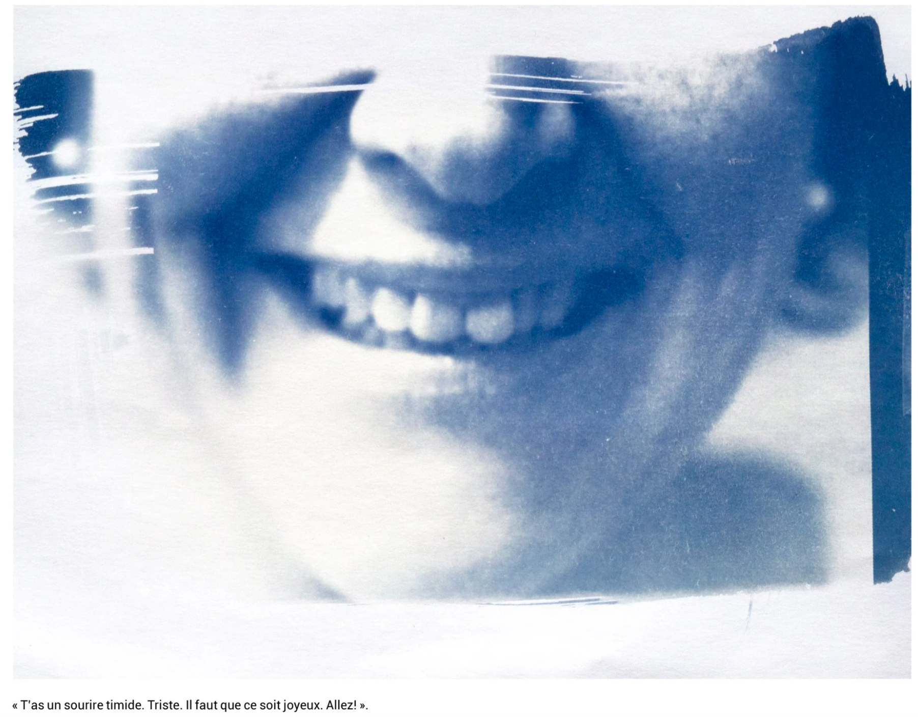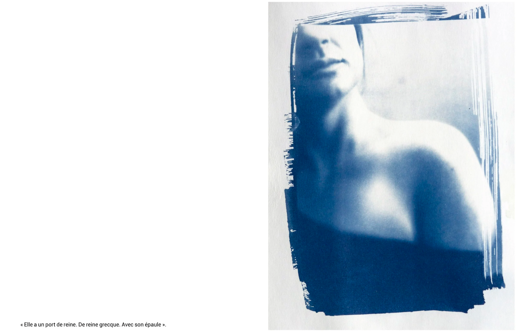 Elles ont parlé de la perte de leur féminité, de la disparition de leur corps derrière de larges habits et des préjugés. Lors des ateliers, elles ont joué avec leur image. Travail aux multiples mains, elles et moi avons photographié, puis développé les images, in situ, à l’aide de la technique du cyanotype. Elles ont pu emporter dans leurs cellules leurs images bleutées sur papier Canson. Les corps enfermés se sont peu à peu exprimés, apaisés. Et le temps d’un instant, retrouvés.