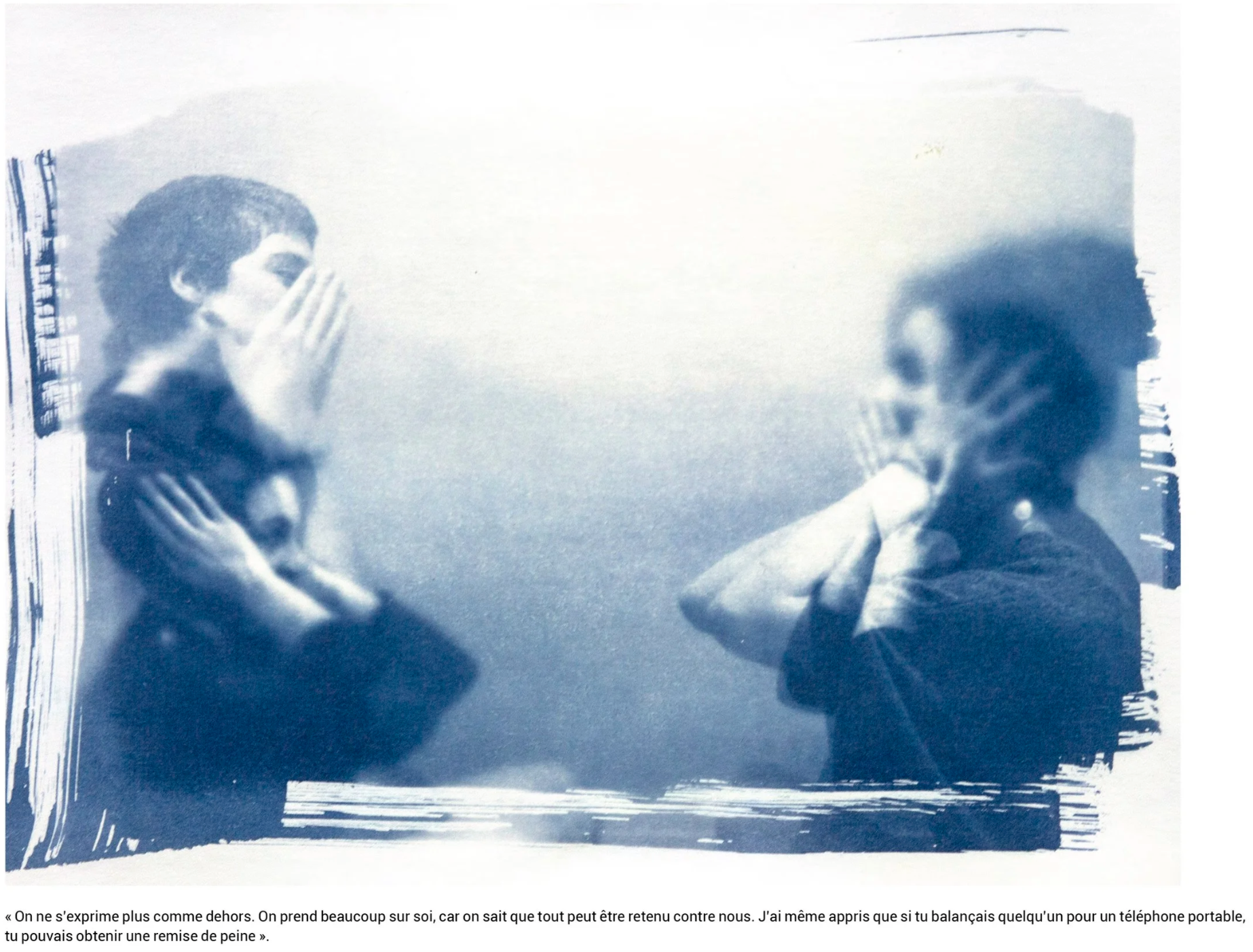 « L'incarcération, c'est un lieu de privation sensorielle. Que ce soit parce qu'on ne mange pas ce dont on a l'habitude, ou parce qu'on on n'a pas de vue sur l'horizon. Mais par rapport à soi aussi, les choses changent. On perd son identité. On perd sa féminité. On n'a pas de parfum ici. S'habiller? On n'en a plus envie. On veut être confortable, on ne veut pas se montrer. y a le corps qui se transforme. Parce qu'ici on s'affaisse. Du fait du manque d'activité physique. On gonfle.